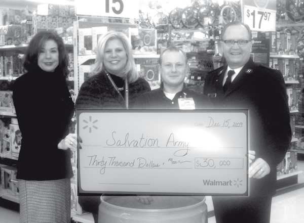 - Walmart Foundation recently presented a $30,000 grant to The Salvation Army of Greater Milwaukee for its ‘Feed the Kids’ mobile summer meal program and ‘Toys for Tots’ at the Midtown Center location. In 2009 90,392 children received summer lunches and more than 15,000 children received toys at Christmas. Pictured are (l-r) Susie Falk, Salvation Army advisory board member, Lisa B, Nelson, senior public affairs manager for Walmart, John Motz Walmart Midtown store manager and Major Jesse G. Collins, Salvation Army Milwaukee County Commander.
