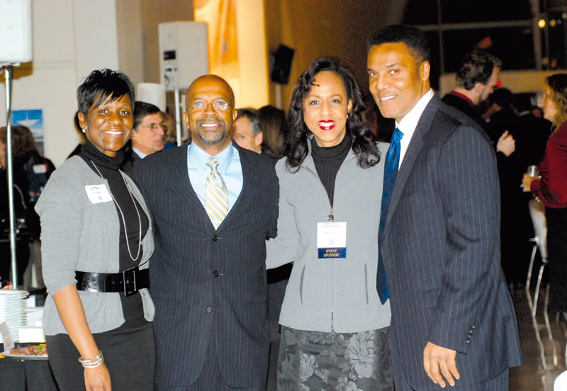 The City of Milwaukee celebrated its 164th Birthday last week, Jan. 26th, hosted by the Milwaukee Press Club, which celebrates 125 years of media in Milwaukee. Pictured above participating in the festivities are: Michelle Mason of ASQ, Ald. Willie Hines, Jr, Common Council president, Mary Dowell, director of community relations for Johnson Controls, and Frank Gaston, Jr, of Capita Productions. Also acknowledged for being the oldest Black newspaper in Milwaukee was, The Milwaukee Courier Newspaper. (Photo by Harry Kemp)