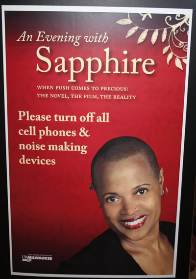 - Author Sapphire was a guest speaker during UW-Milwaukee’s Black History Month Series. She signed autographs for attendees and copies of her 1996 novel ‘Push’ were available. The Academy Award winning film ‘Precious’, is based on Sapphire’s novel, ‘Push’, that starred new comer Gabourey Sidibe. Comedian and actress Mo’Nique brought even more attention to the project as she won her first Academy Award, Golden Globe, and SAG awards, three of motion pictures highest honors given. Geoffrey Fletcher won an Oscar for “Best Adapted Screenplay”. Sapphire has stated that she loved the adaptation of her novel to the film. (Photo by Robert A. Bell)