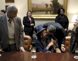 Michelle and I were deeply saddened to hear about the passing of Dorothy Height – the godmother of the Civil Rights Movement and a hero to so many Americans. Ever since she was denied entrance to college because the incoming class had already met its quota of two African American women, Dr. Height devoted her life to those struggling for equality. She led the National Council of Negro Women for 40 years, and served as the only woman at the highest level of the Civil Rights Movement – witnessing every march and milestone along the way. And even in the final weeks of her life a time when anyone else would have enjoyed their well-earned rest ‘Dr. Height continued her fight to make our nation a more open and inclusive place for people of every race, gender, background and faith. Michelle and I offer our condolences to all those who knew and loved Dr. Height and all those whose lives she touched.
