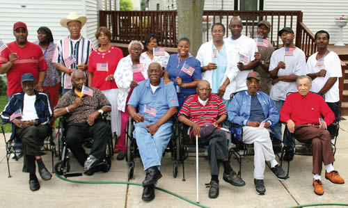 - Veterans at Family House, Inc. were given a special tribute on Memorial Day by Clarene Mitchell, Community Liaison for VITAS Innovative Hospice Care. The residents and staff in attendance received a flag and tac pin of the American flag in appreciation for their military service. Many of the Veterans shared their military memories with pride. Family house is a long-term care facility for elderly and disabled residents. It is located in the heart of Milwaukee’s African American community. Mrs. Cordelia Taylor began Family House over 20 years ago when she transformed the home she raised her family in into a care facility, now it includes a row of houses providing an environment that does not resemble any facility offering the same level of care. (Photo by Robert Bell)
