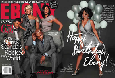 It’s time to celebrate – Ebony is 65! The magazine America has grown to love and cherish is making a big splash to commemorate over six decades of telling our stories like no one else. To start, we have lush photographs on a special gatefold cover of Samuel L. Jackson, Usher and Nia Long, Mary J. Blige and Taraji P. Henson.