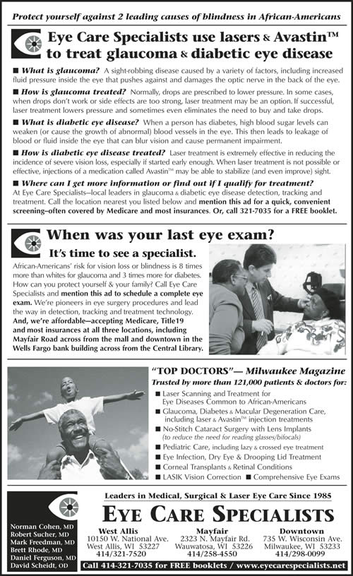 Eye care specialists are fighting the battle to protect vision through education and the use of lasers and new medication injection treatments. Wisconsin Diabetes Advisory Group member and medical optometrist Dr. David Scheidt encourages patients to also take non-invasive steps of their own to prevent diabetic vision loss, including: