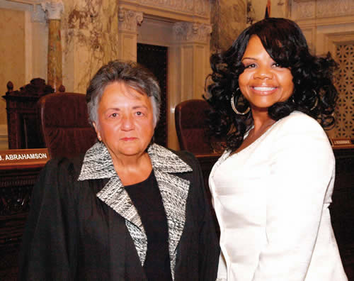 This week on Monday, Jan. 3, newly sworn in State Representative Elizabeth M. Coggs and Wisconsin Supreme Court Chief Justice Shirley S. Abrahamson pose for a photo following the official swearing in ceremony for Coggs’ new state position. She was joined by family members and friends. Following the ceremony a reception was held in her honor in Madison at the State Capitol. (Photo by Cy White)