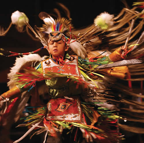 Representatives from two of Wisconsin Native American Nations joined in the birthday celebration of Dr. Martin Luther King, Jr. Day held at the 27th Annual Marcus Center eventon Monday, Jan. 17, 2011. Black Claws, 9 year-old Dave Cleveland of the Ho-Chunk Nation performed a warriors dance. (Photo by Pat A. Robinson)