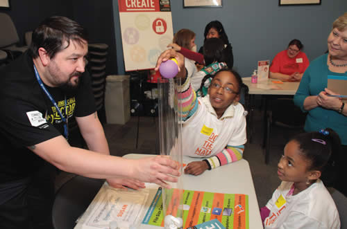 Middle school students are taking part in several hands-on experiments that unlock the mysteries behind digital content; the world of WiFi and Wireless; staying safe and secure in transferring information over the Internet and more. “Here at Time Warner Cable, we use science and mathematics every day to deliver high-quality video, voice and high-speed data services to our customers,” said Tom Adams, Regional Vice President of Operations for Time Warner Cable’s Wisconsin Division. “This hands-on, discovery-based curriculum for middle school students gets them out of the classroom and into our operations where our employees use STEM skills every day to do their jobs.” “These activities bring Connect A Million Minds – the company’s signature philanthropic effort to stimulate STEM-learning among young people – to life,” Adams said. “Our employees serve as role models and mentors and we believe that connecting the technology that is vital to our business with STEM learning can be the spark that encourages students to pursue STEM-related education and careers.” (Photos by Robert A. Bell)