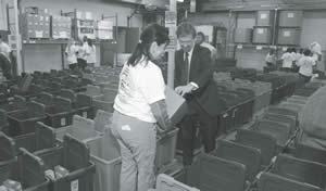 Newly elected County Executive Chris Abele lends his hands to help prepare the Easter Basket Meal donations from Palermo’s Pizza to the Hunger Task Force. (Photo by Robert A. Bell)