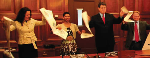 Milwaukee County Supervisor Marina Dimitrijevic, Chair of the County Board Committee on Information Technology (Project TEAM), this week officially launched the County Legislative Information Center (CLIC), a new service that provides online access to all legislation within Milwaukee County. The event included a “paper cutting” ceremony with County Clerk Joe Czarnezki and Supervisors Nikiya Harris and John F. Weishan, Jr., to symbolize the expected savings in paper and staff time.