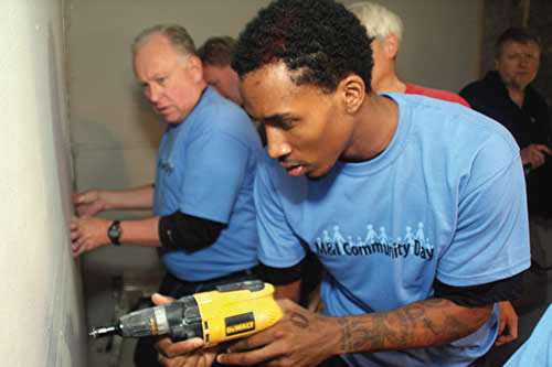 Milwaukee Bucks’ Guard Brandon Jennings last week teamed up with Mark Furlong, president and CEO of Marshall & Ilsley Corporation, and employees at the Milwaukee offices of M&I Bank to install drywall in five Milwaukee Habitat for Humanity (MHFH) homes in Milwaukee’s Harambee neighborhood.