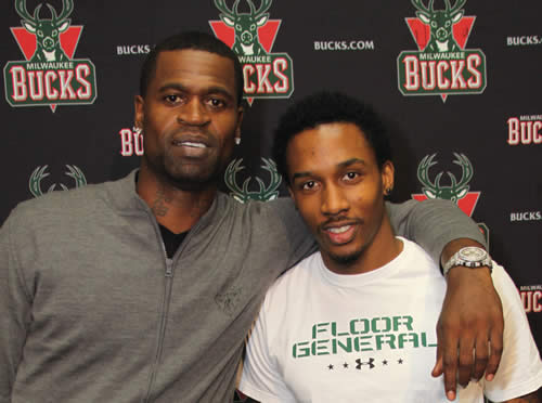Brandon Jennings joined in on welcoming Stephen Jackson, an Oak Hill Academy alumnus from California to the Bucks team. Bringing Jackson on moves the team closer to bringing home the NBA title. Milwaukee and The Bucks welcome Stephen Jackson to the team. WOW! The emotional and passionate style of basketball will be added to the Milwaukee Bucks. Coach Skiles has snagged one of the most under rated guard/small forwards in the NBA. With a walk of purpose. At a Wednesday morning press conference Coach Skiles walked into the room and opened up with a welcome to his new player. Jackson’s response was a smile as he took his seat and the questions began. From his emotional outbursts that received technical fouls to passionate support for teammates that resulted in ejection from the game. Jackson will bring, (in this humble reporter’s view), a leadership that will help stimulate a Championship atmosphere. (Photo by Robert A. Bell)