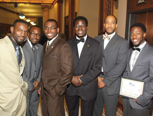 The young men pictured above served as ‘Be the Change’ Chapter Leaders for the literacy, leadership and life skills program launched by Ald. Ashanti Hamilton in June. Recently, the summer program held its culmination ceremony at the Milwaukee City Hall Rotunda. Several young men are pictured above from (r to l): David Bowen, Tristan Gross, Kiarri McBroom, Supreme S. Allah, Mandela Barnes and Richard Givhan. (Photo by Robert A. Bell)