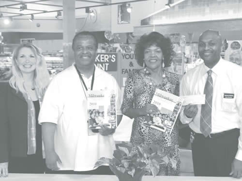 Pick ‘n Save and the Roundy’s Foundation hosted a Community Fair recently at the 2355 N. 35th St. location in Milwaukee. The fair was designed to support and raise awareness for local organizations dedicated to fighting hunger and advancing literacy. Four Milwaukee organizations shared in the more than $35,000 in grants and gift cards from the Roundy’s Foundation. Agape Community Center, Goodwill Industries of Southeastern Wisconsin, Milwaukee Urban League and Walker’s Point Youth & Family Center. The Milwaukee Urban League received $20,000 for its Pathways to College Program, which has a strong literacy component. Pictured above are Connie Jones from Roundy’s, Gregory Fanning, assistant director of Education & Training from the Urban League, Nona Taylor, program administrator for the Urban League and Pick n’ Save store manager, Johnnie Dinkins. (Photo by Robert A. Bell)