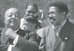Bishop Daniels and Bishop Darryl Hines share a moment during the opening ceremony of the dormitory. (Photo by Robert A. Bell)
