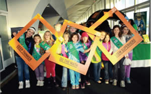 Great visuals of Girl Scouts doing a FIRST LEGO League demonstration and thousands of children will be interacting with giant robots, launching rockets, making solar bead bracelets and much more!