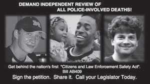 Please sign this petition to ensure independent and fair investigations for all officer-involved fatalities, www.AB409.com.
