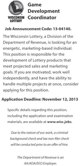 Position Open: Game Development Coordinator at Wisconsin Lottery
