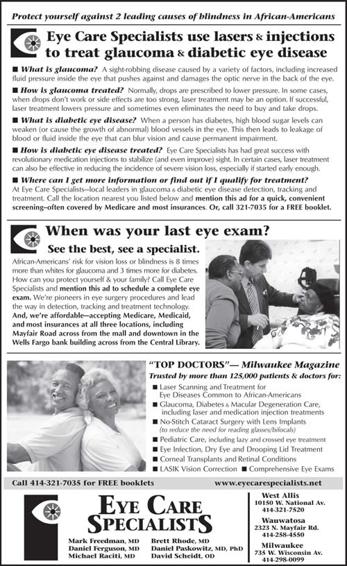Call 414-321-7035 for FREE copies or to schedule an appointment for a thorough examination at their offices on 7th & Wisconsin Ave., Mayfair Road across from the mall, or 102nd & National Ave.