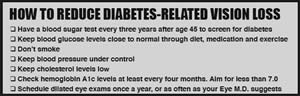 “Diabetic eye disease can appear as early as a year after the onset of diabetes. All diabetics—type 1 or 2, insulin-dependent or not— are at risk.