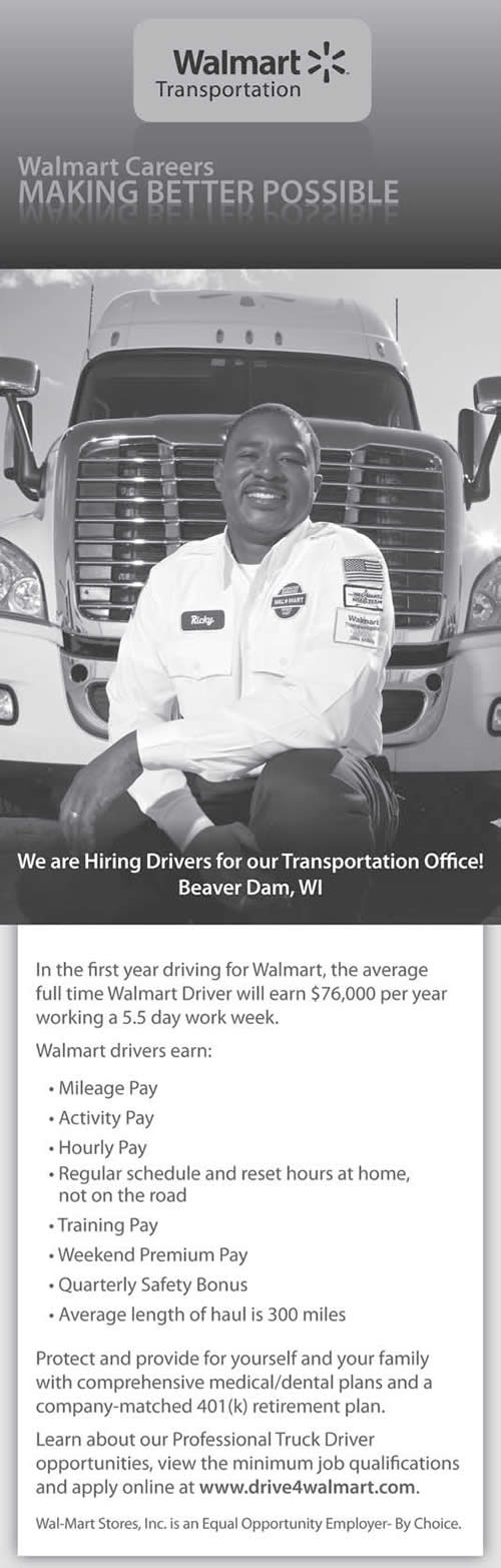 Share: Click to share on Facebook (Opens in new window) Facebook Tweet Click to email a link to a friend (Opens in new window) Email Click to print (Opens in new window) Print Positions Open: Drivers at Walmart Transportation Office in Beaver Dam December 14, 2013 Share: Click to share on Facebook (Opens in new window) Facebook Tweet Click to email a link to a friend (Opens in new window) Email Click to print (Opens in new window) Print