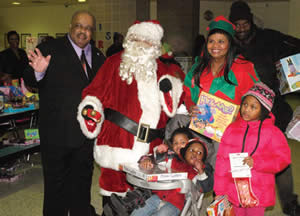 Charles “Butch” Walton, son of Jeannetta Robinson, Santa and Elizabeth Coggs joined in the toy give away to the children during the CYD event. (Photo by Cy White)