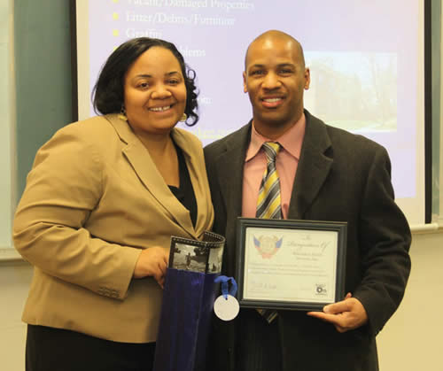 Alderwoman Milele Coggs recognized various individuals recently at her town meeting. One of her award recipients pictured above with her is Dr. Tito Izard, president and CEO of Milwaukee Health Services, Inc. (MHSI). (Photo by Robert A. Bell)