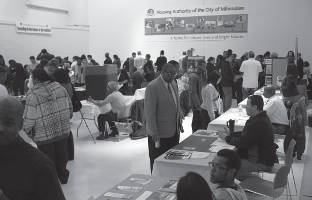 More than 240 job seekers attended a job fair yesterday hosted by an employment coalition made up of the Housing Authority of the City of Milwaukee (HACM), Milwaukee Achiever, the Guest House, WCS Parsons House, Infallible Helping Hands, and the Wisconsin Department of Workforce Development. The job fair was held at the HACM Community Services Building, located at 650 W. Reservoir.