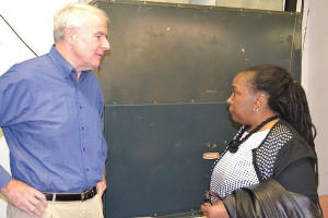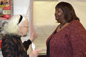 Mayor Tom Barrett and SDC Commissioner ViAnna Jordan talk following the April Community Brainstorming Forum
