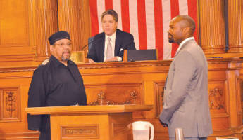 Former Milwaukee County Reserve Judge Russell Stamper Sr., swore in his son, Russell W. Stamper II, as alderman for the 15th district.