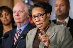 Representative Marcia L. Fudge of Ohio said black voter turnout was essential. Credit T.J. Kirkpatrick for The New York Times
