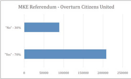 Milwaukee voters have also supported the overturning of Citizens United – a piece of legislation that grants corporations the status of individuals – with 70 percent support.