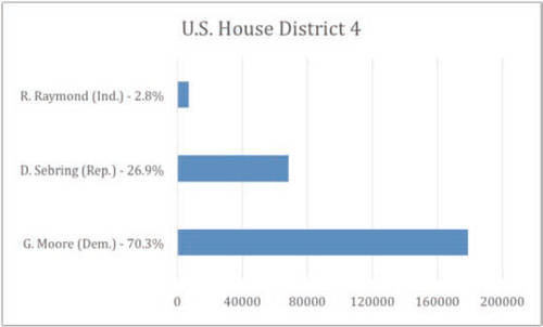 Voters in U.S. House District 4 have re-elected Democratic candidate Gwen Moore into Congress with 70 percent voter support.