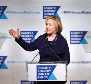 Clinton said Kennedy, who was assassinated in 1968, would agree that it’s “possible to keep us safe from terrorism and reduce crime and violence without relying on torture abroad or unnecessary force or excessive incarceration at home.”