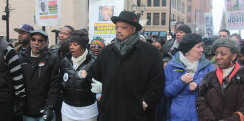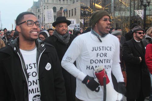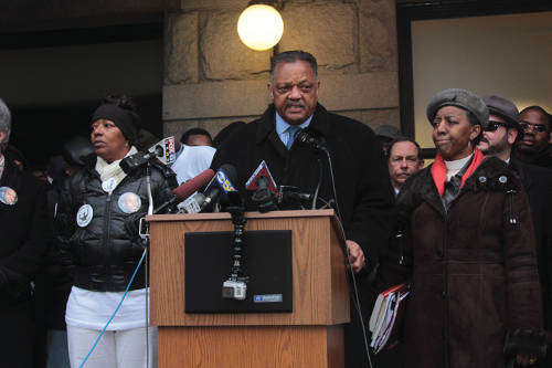 Hundreds of Milwaukee area residents and protesters gathered on a cold, wintry, Friday afternoon in downtown Milwaukee to rally in support of a fight for justice lead by the family of Dontre Hamilton, and to hear inspiring words from the family and civil rights leader, Reverend Jesse Jackson.