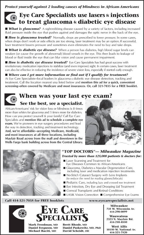 The partners at Eye Care Specialists, an ophthalmology practice that focuses on educating and caring for Milwaukee’s African- American community, have an answer.