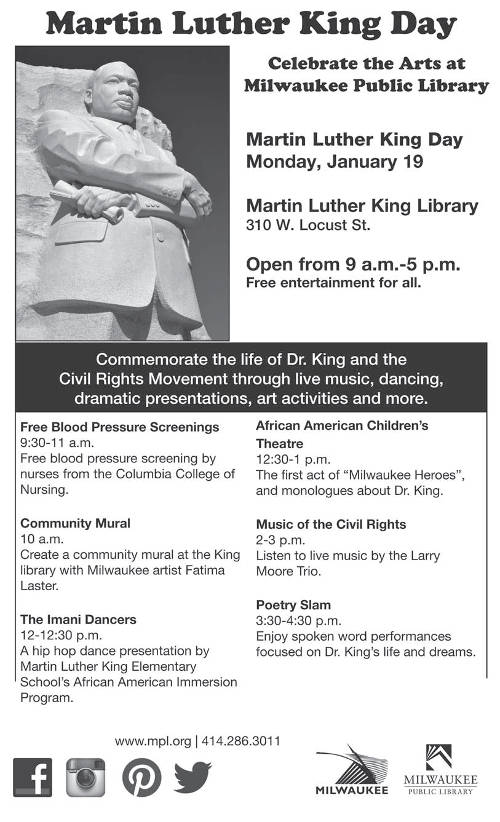 Celebrate the Arts at Milwaukee Public Library on Martin Luther King Day