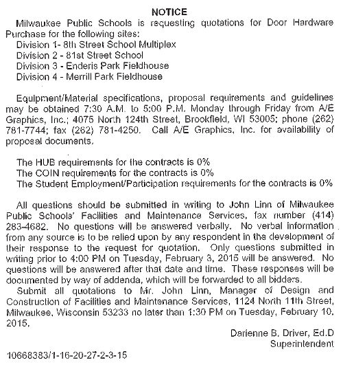 Share: Click to share on Facebook (Opens in new window) Facebook Tweet Click to email a link to a friend (Opens in new window) Email Click to print (Opens in new window) Print MPS Requesting Quotations for Door Hardware Purchase for Multiple Sites January 24, 2015 Share: Click to share on Facebook (Opens in new window) Facebook Tweet Click to email a link to a friend (Opens in new window) Email Click to print (Opens in new window) Print