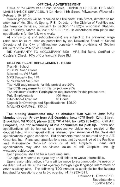 MPS Requesting BIDs for Heating Plant Replacement – Rebid at Franklin School