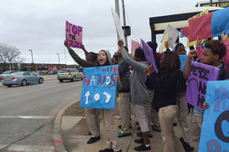 On April 29, students took to the sidewalk, donning handmade signs, chanting the words “Black lives matter; stop the violence!”