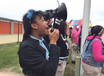 Halfway through the march, District 4 State Senator Lena Taylor stopped the children to encourage their work.