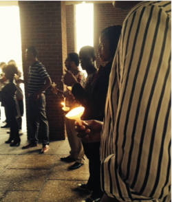 Angry, confused, hurt, sad. These were some of the words that students participating in a prayer vigil at University of Wisconsin-Milwaukee (UWM) used to describe their emotions on the latest shooting tragedy in Charleston, South Carolina. Nearly 50 students from UWM, Marquette, Medgar Evers and Morehouse took part in a prayer vigil to honor people in their lives who were struck down by violence and to try to make sense of what happened last week in South Carolina.