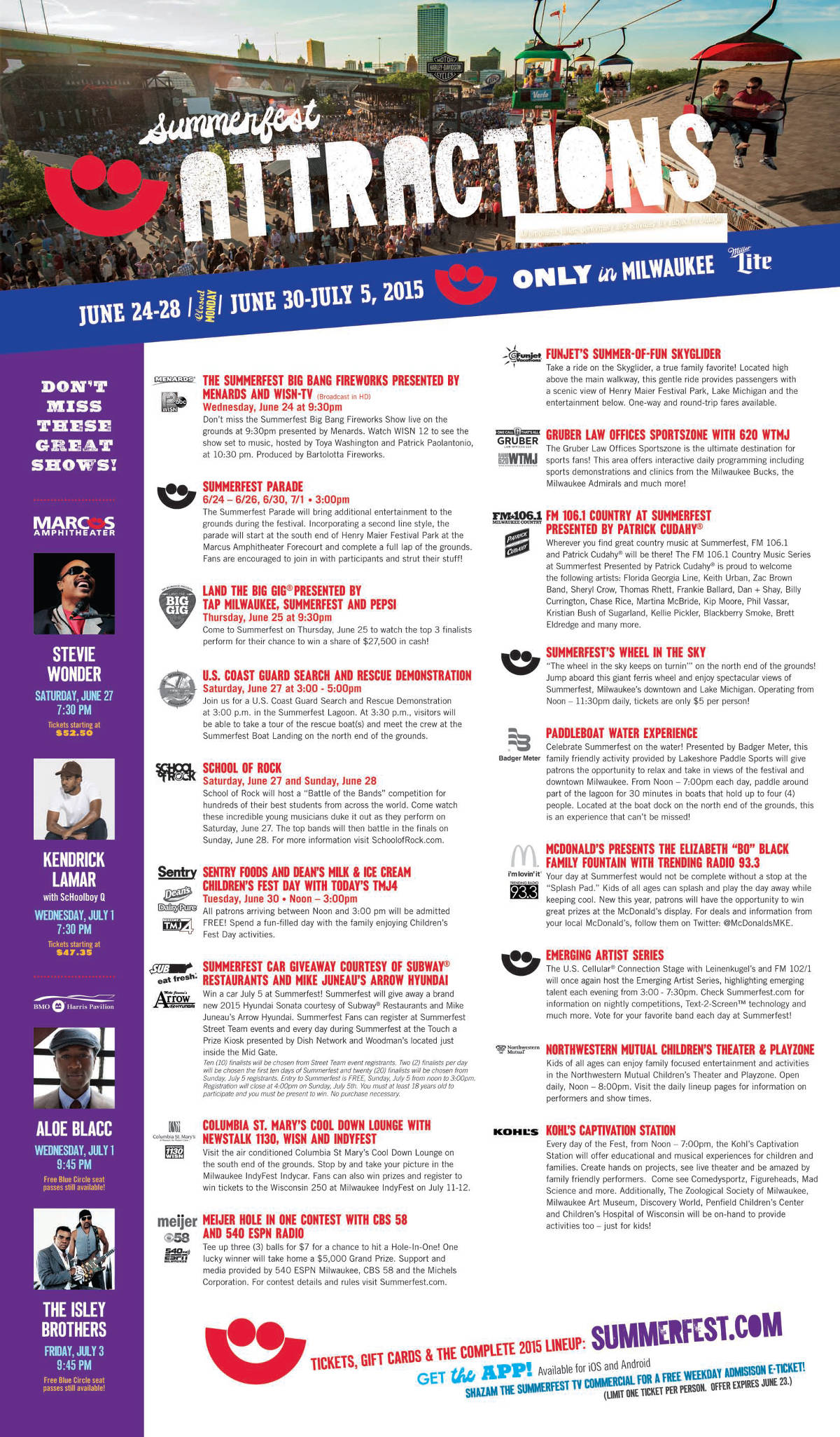 Share: Click to share on Facebook (Opens in new window) Facebook Tweet Click to email a link to a friend (Opens in new window) Email Click to print (Opens in new window) Print Summerfest Attractions June 27, 2015 Share: Click to share on Facebook (Opens in new window) Facebook Tweet Click to email a link to a friend (Opens in new window) Email Click to print (Opens in new window) Print
