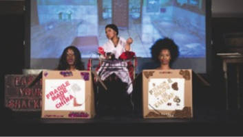 Lights! Camera! Soul! founder Ashley Jordan, center, performs beside two fellow club members in The Colored Museum.