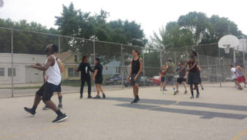 B-MKE is a public basketball tournament between thirty-two Milwaukee bands and artists’ groups.
