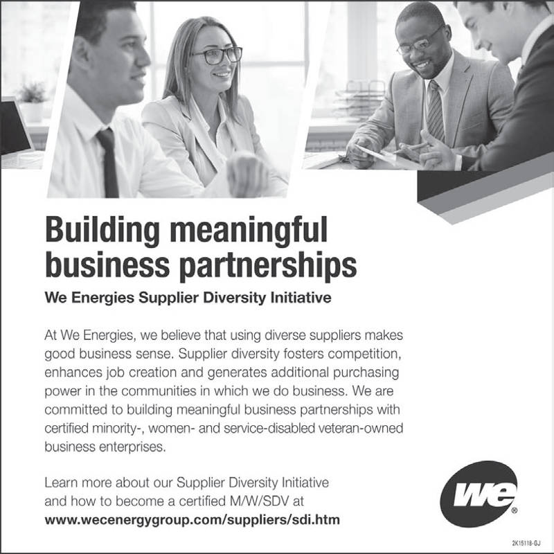Share: Click to share on Facebook (Opens in new window) Facebook Tweet Click to email a link to a friend (Opens in new window) Email Click to print (Opens in new window) Print WE Energies Supplier Diversity Initiative August 29, 2015 Share: Click to share on Facebook (Opens in new window) Facebook Tweet Click to email a link to a friend (Opens in new window) Email Click to print (Opens in new window) Print