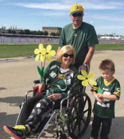 On the morning of Sunday, Sept. 20, she came to the Henry Maier festival grounds in a wheelchair, left leg in a full cast. Despite her injury, she was still bent on finishing the walk to foster awareness of the disease which currently affects about five million people in the United States. With the help of her husband, she made it across the finish line. “I hope that education is put out there to understand that it’s the same as if somebody has cancer and their body is dying,” explained Wasikowski. She recalled her father’s struggle.