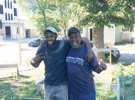 Andre Ellis, founder of We Got This, stands with Brandon “Apollo” Triplet in one of the urban garden his program’s participants helped to nurture this summer. Photos by Dylan Deprey.