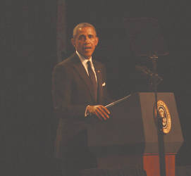 “Ms. Robinson — as some of you know, earlier this year, my family and I joined many in Selma for the 50th anniversary of that march. And as we crossed the Edmund Pettus Bridge, I held Ms. Amelia’s hand.