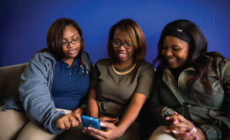 Teens from local organizations helped test the app. Pictured here (left to right) are: Skye Finley, Shira Higgins, Shateria Wiley.