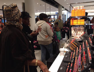 Shoppers browse the makeup selection during last week Friday’s grand opening of Nordstrom. Photo by Ariele Vaccaro.