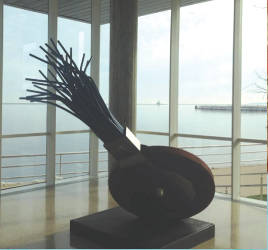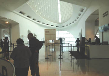 The sun shone down into the lobby through the windows of the Quadracci Pavilion at the Milwaukee Art Museum.